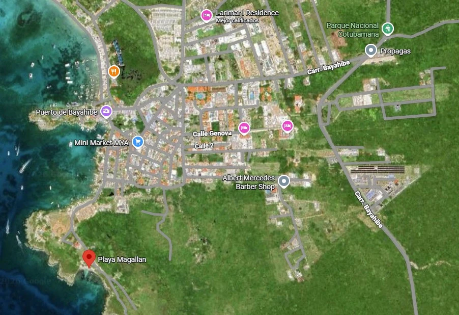 A piedi (consigliato): Dal Parque Central di Bayahibe, segui Calle Juan Brito verso est in direzione Dominicus. Resta sulla strada costiera quando diventa sterrata. Dopo circa 500 metri, superato il campo da baseball, vedrai aprirsi sulla destra una piccola baia — quella è Magallanes. Tempo di cammino: circa 5 minuti.